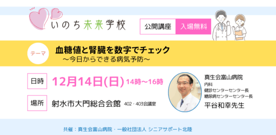 日時12月14日(日)午後2時~4時場所射水市大門総合会館 402・403会議室講師真生会富山病院…