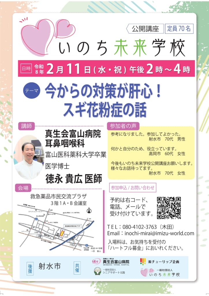 | 講師 | 真生会富山病院 耳鼻咽喉科 医学博士 徳永 貴広医師 |