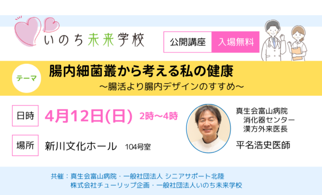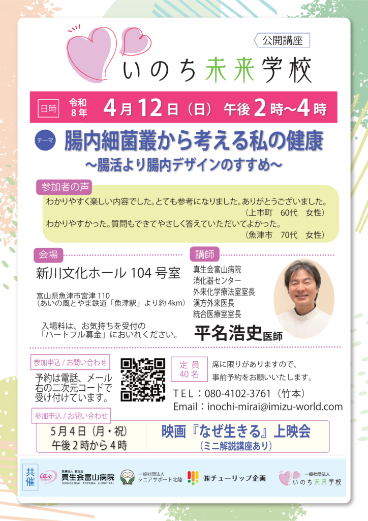 | 講師 | 真生会富山病院 消化器センター 外来化学療法室室長 漢方外来医長 統合医療室室長 平名浩史医師 |