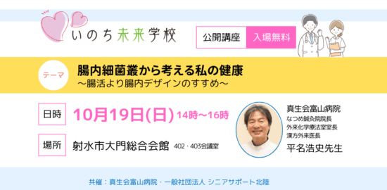 日時10月19日(日)午後2時~4時場所射水市大門総合会館 402・403会議室講師真生会富山病院…